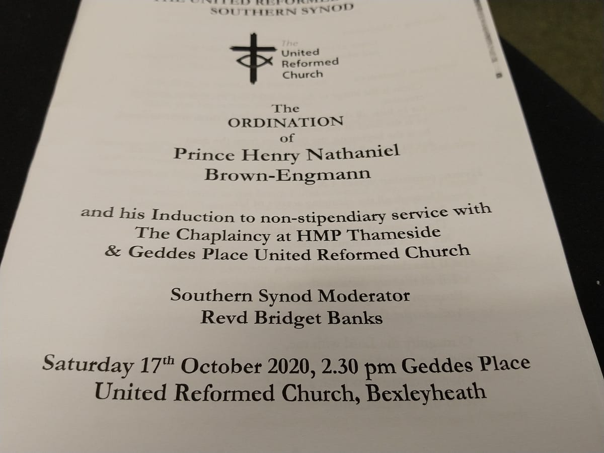 Prince was ordained and inducted to non-stipendiary service with the Chaplaincy at HMP Thameside and Geddes Place URC on 17th October by the Southern Synod Moderator Revd. Bridget Banks. If you were not able to see this service on Zoom you haven’t lost the opportunity. It can be found here on YouTube www.youtube.com/watch?v=wyZSTmw8ntw&t=3s